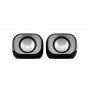 Potencia nominal: 2 x 3 W Respuesta de frecuencia: 150 Hz-20 KHz. Sensibilidad: 85 dB +/- 3 dB. Impedancia: 4 x 2 - Tamaño del altavoz: 52mm. Conectores: Jack de 3,5 mm (audio), USB (alimentación). Alimentación: CC 5 V/1 A. Longitud del cable: 1,3 m - Peso: 270 g. Dimensiones: 64 x 78 x 55 mm