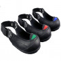 * Punta ultraligera de aluminio/titanio resistente a 200 J. * Delante: suela antideslizante Tiger-grip®. * Disponible en 3 tallas para cubrir todos los números del 34 al 48 * talla (S) color azul, 34-38 / talla (M) color rojo, 38-43 / talla (L) color verde, 43-48. * Se adapta a todos los zapatos, incluso a los zapatos de tacón. * Cubrecalzado reutilizable.